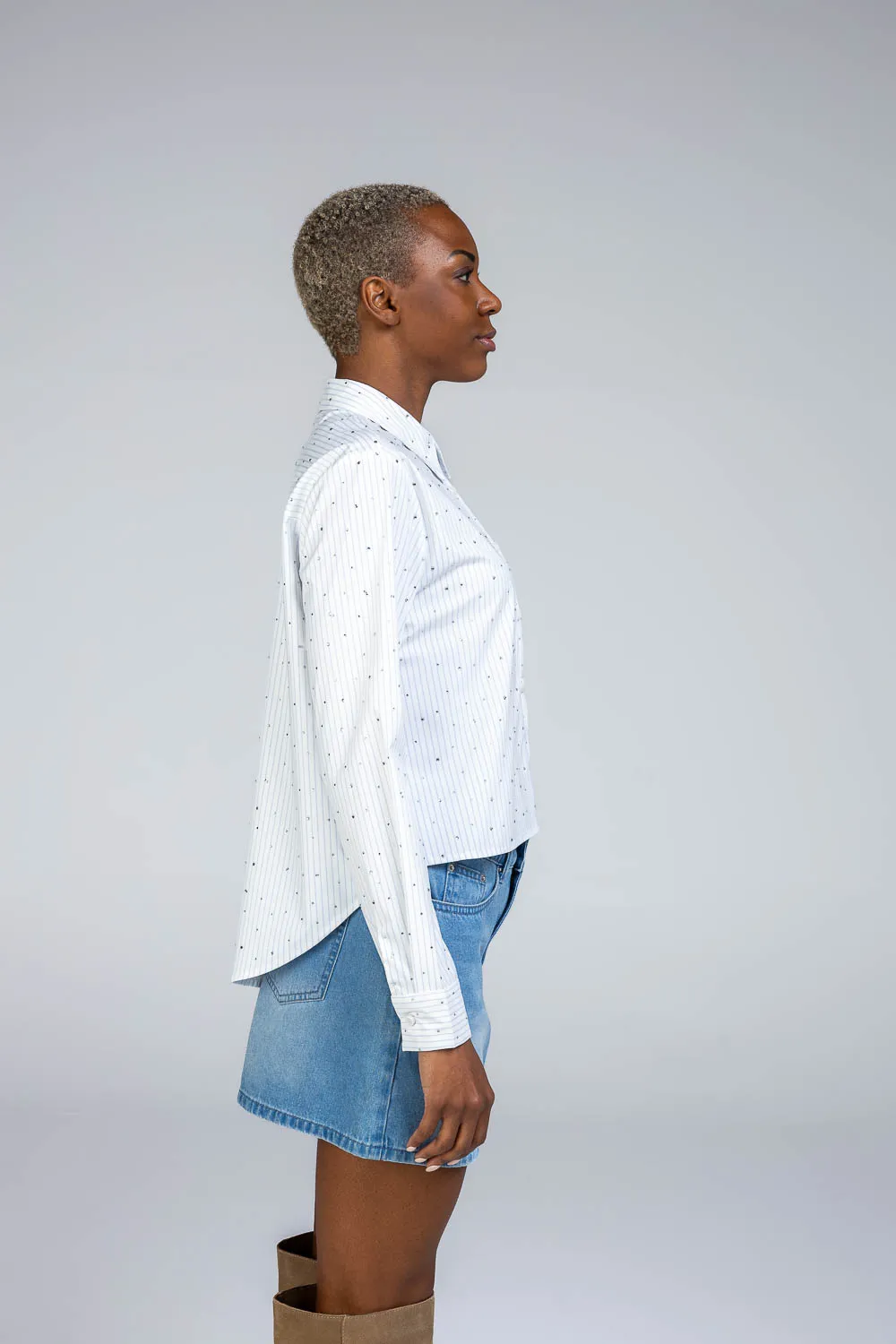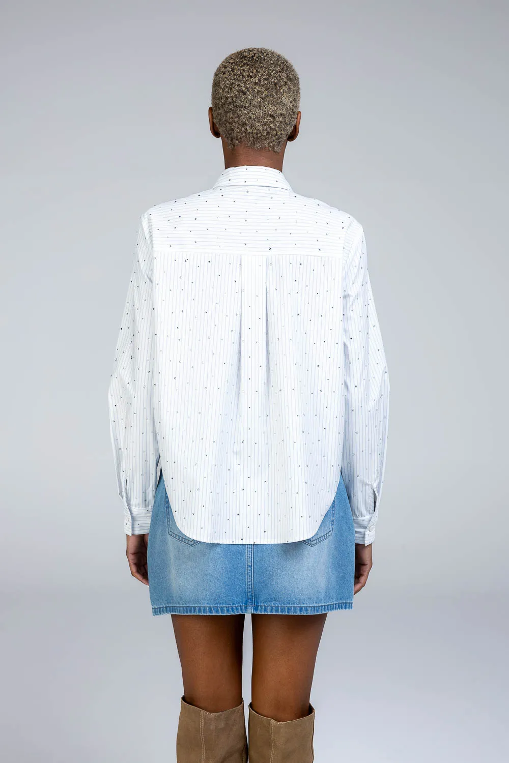 Camicia cropped in popeline strass