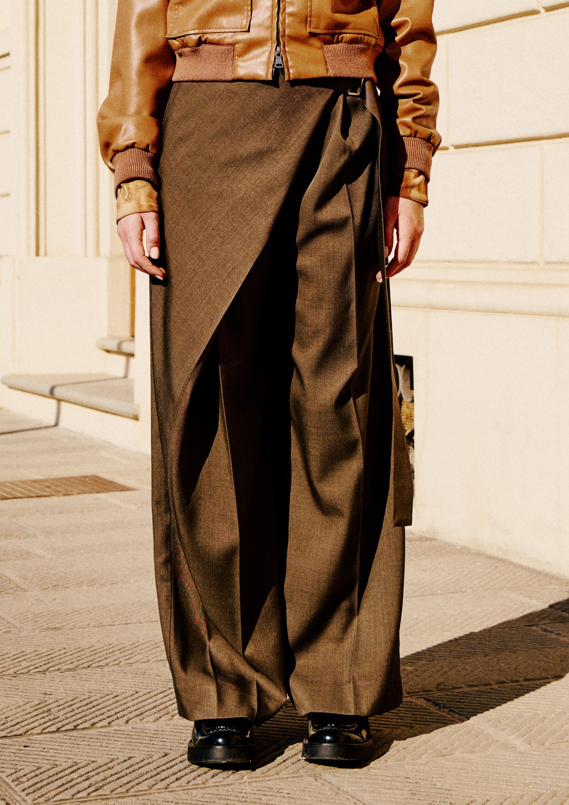 Pantalone in eco-pelle con pinces