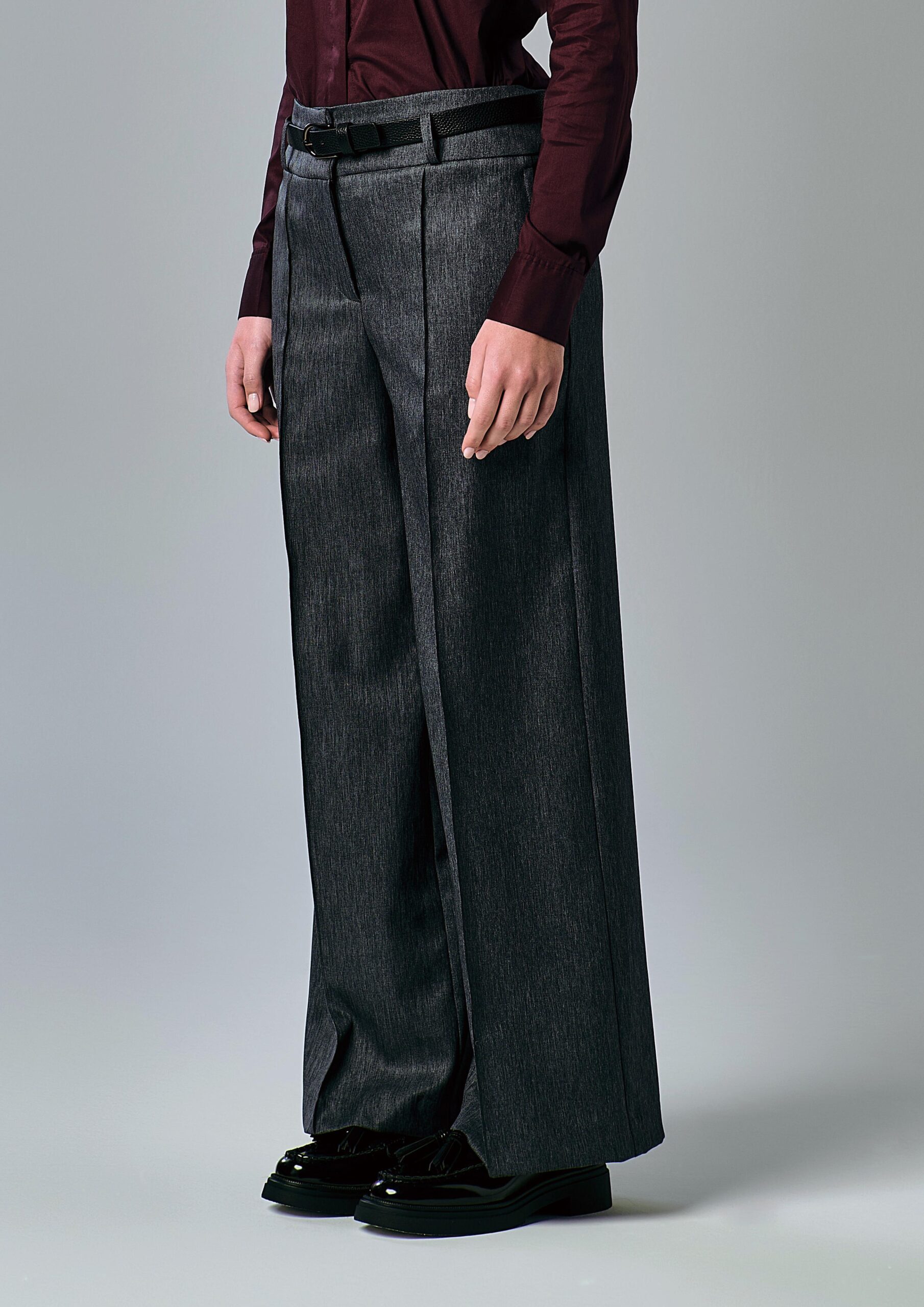 Pantalone con piega in viscosa-cotone e cintura